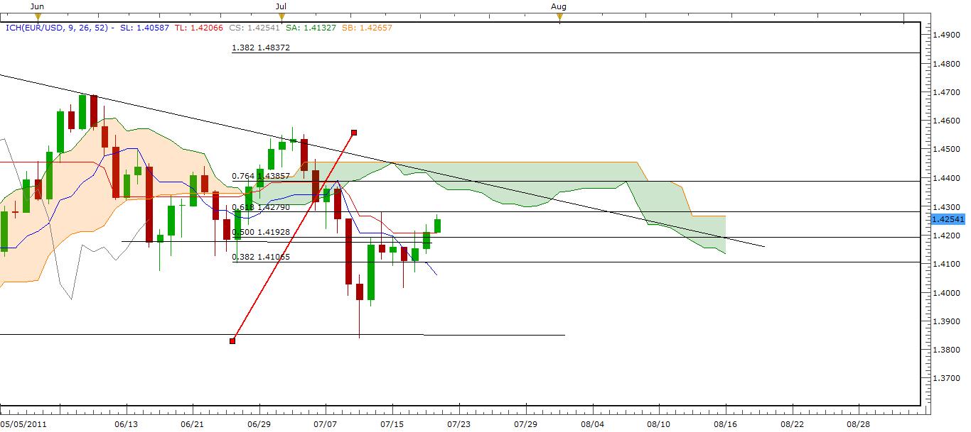 Trade Description: Trend below Kumo and retracing 0.61 Fib resistance level, Tenkan sen crosses Kijun sen. I will sell at 1.42790.