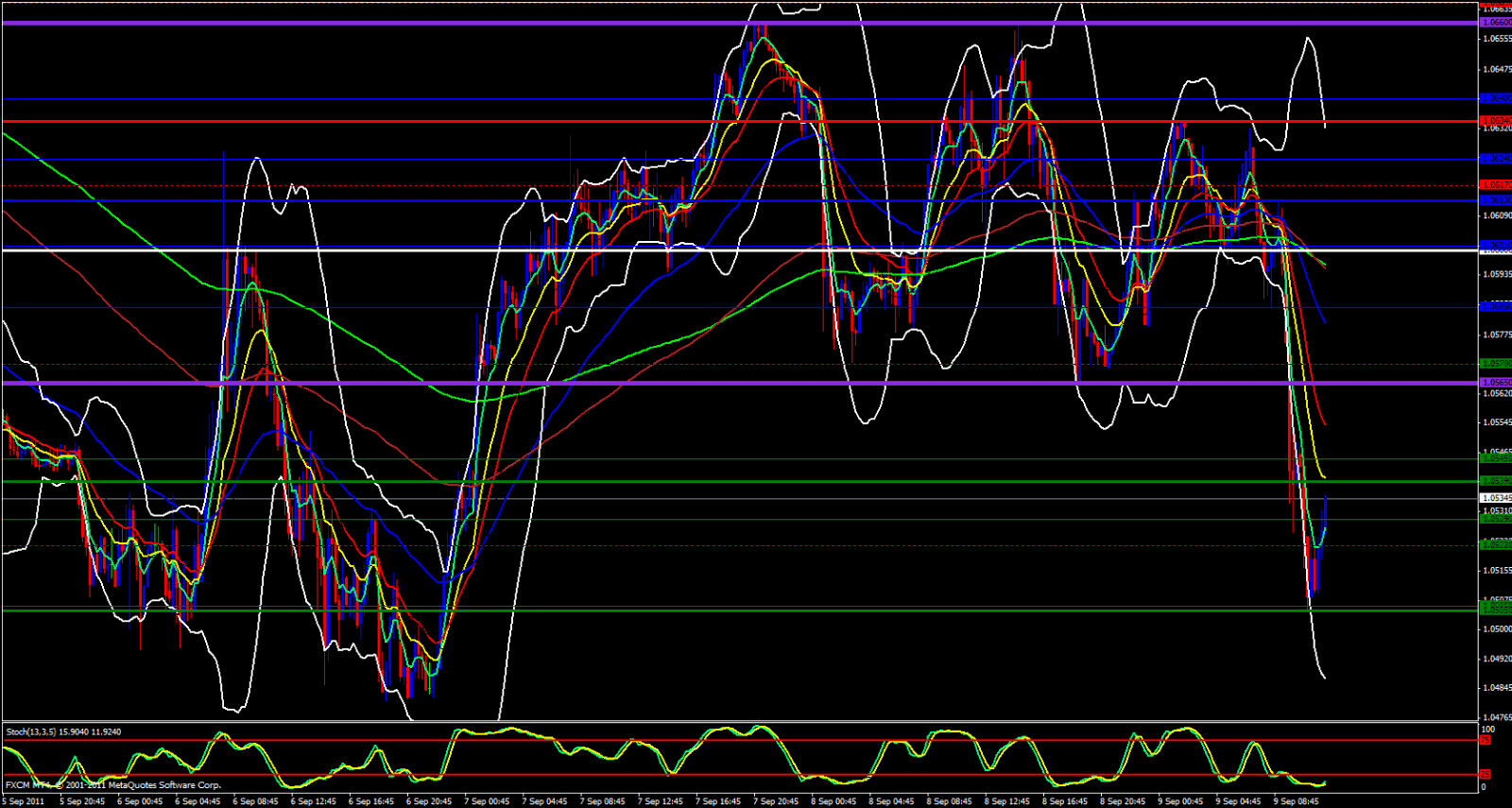 If price were to reach 1.0550 I would consider a short with a stop loss just above 1.0570 If price were to break above 1.0570 I would wait for a pullback down to 1.0565 and look to long this to 1.0600 with a stop loss around 1.0550 .