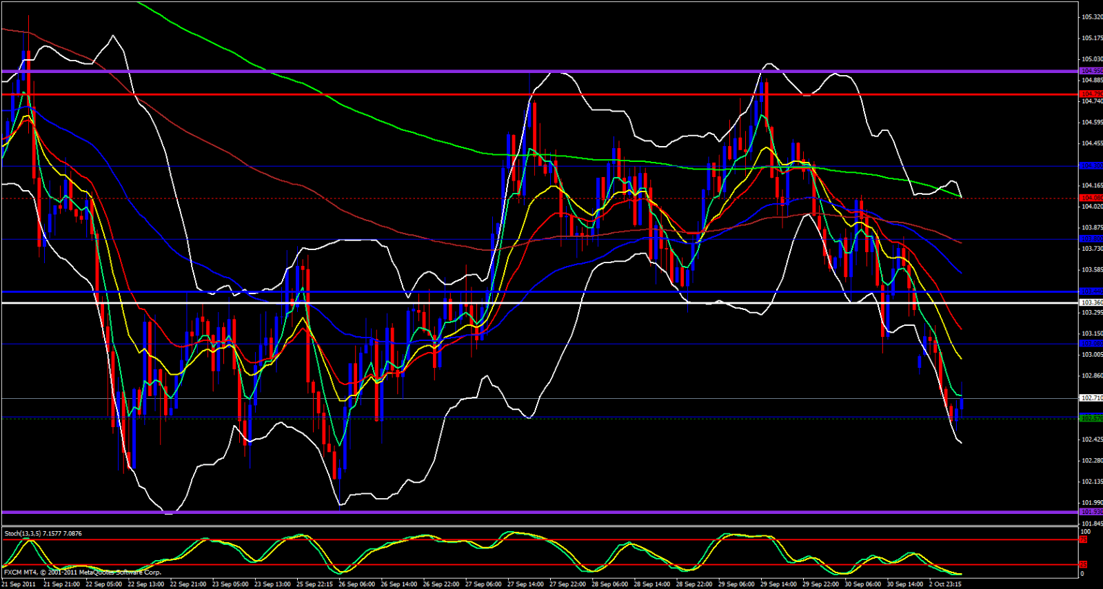 I start my analysis for this pair looking at the USD/JPY and I see that on the daily chart we have already made a retracement to the daily 55 ema and that the upper Bollinger band was closed and pointing down, this gives a bearish appearance.