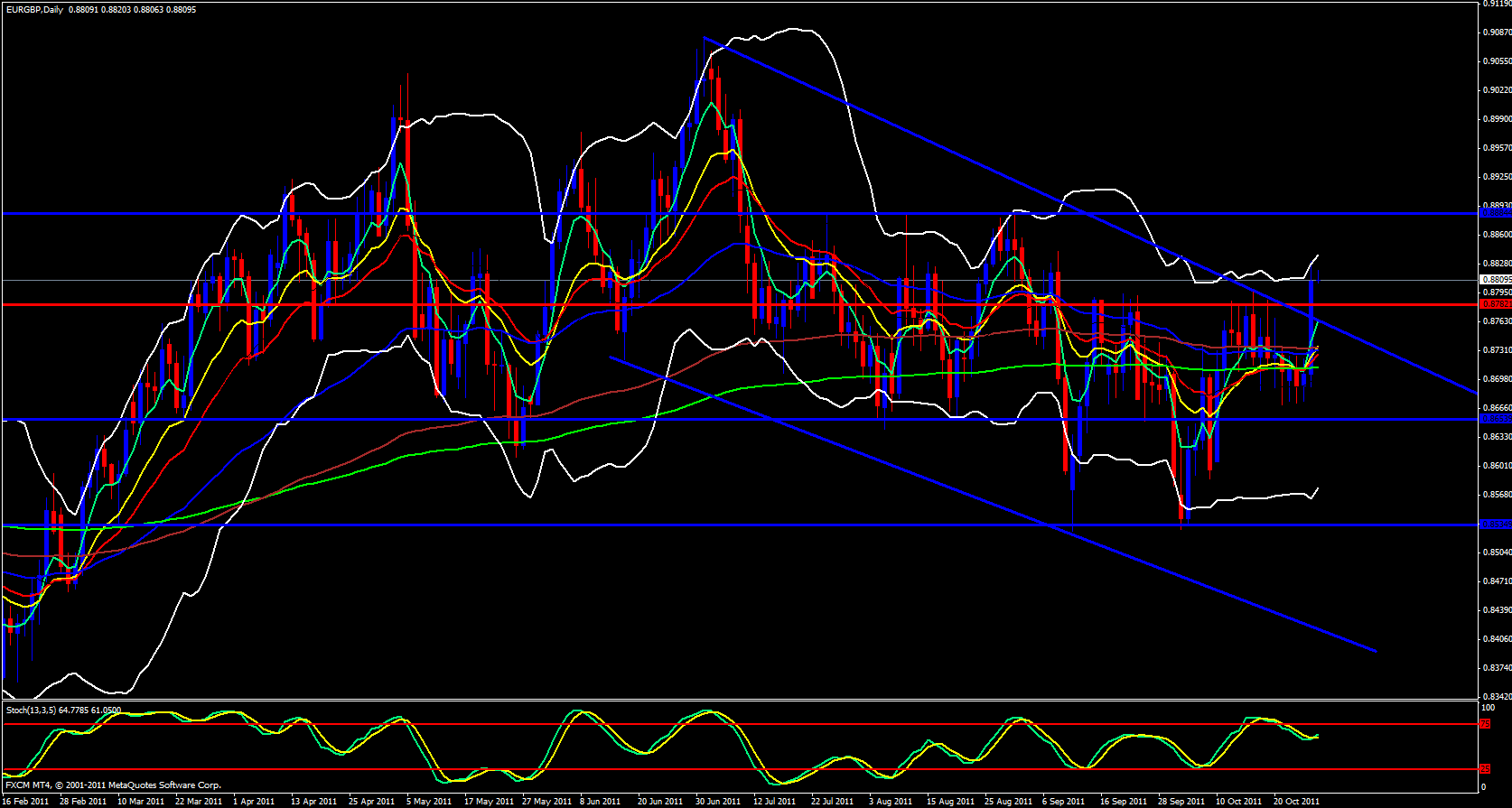 This move was very extreme and there will most likely be continuation to the upside, however, usually after such a brisk move such as this, consolidation usually occurs. The reason is because the daily EMA's need to catch up with price.