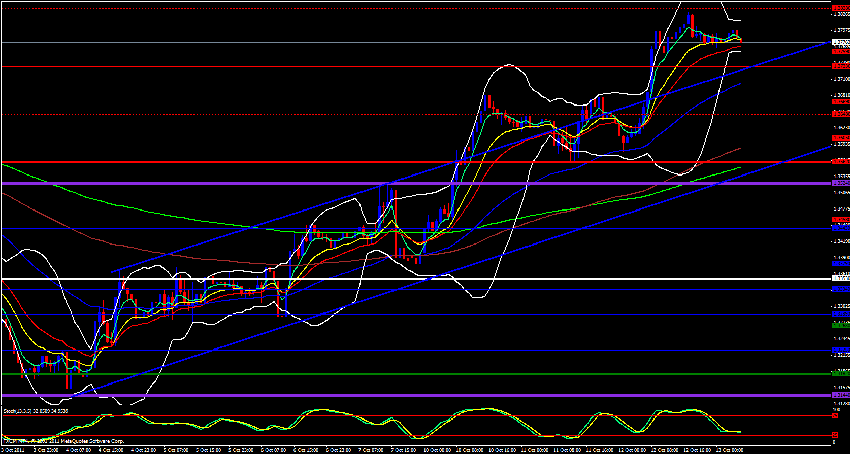 Moving over tot he 4 hour chart it is obvious that price has been riding the 5 ema and but price also just reached the monthly R2 reversal pivot point and profit taking and sell orders will take place at that level.