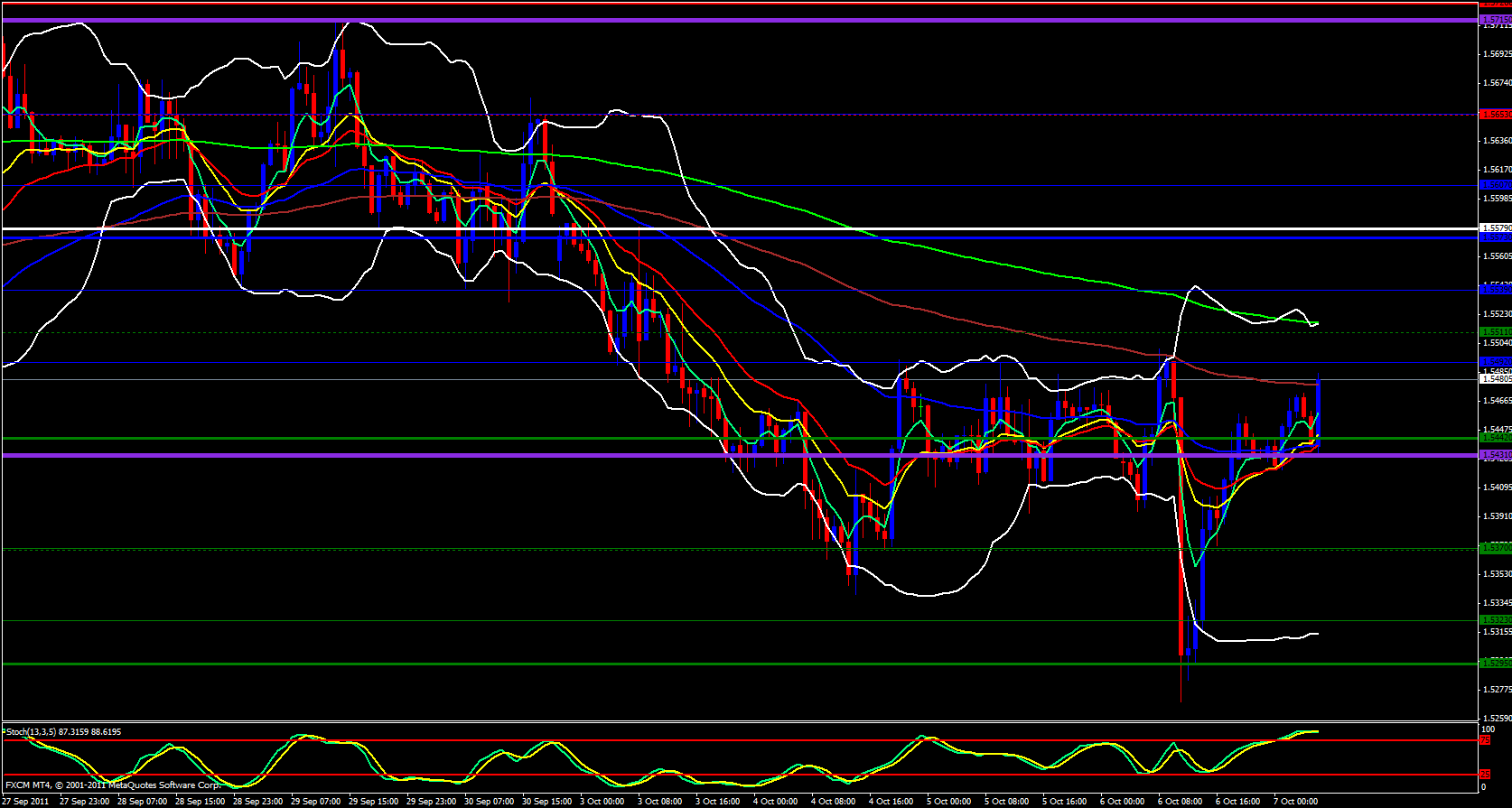Moving over to the 1 hour chart I see price is up against the 144 ema as well and the