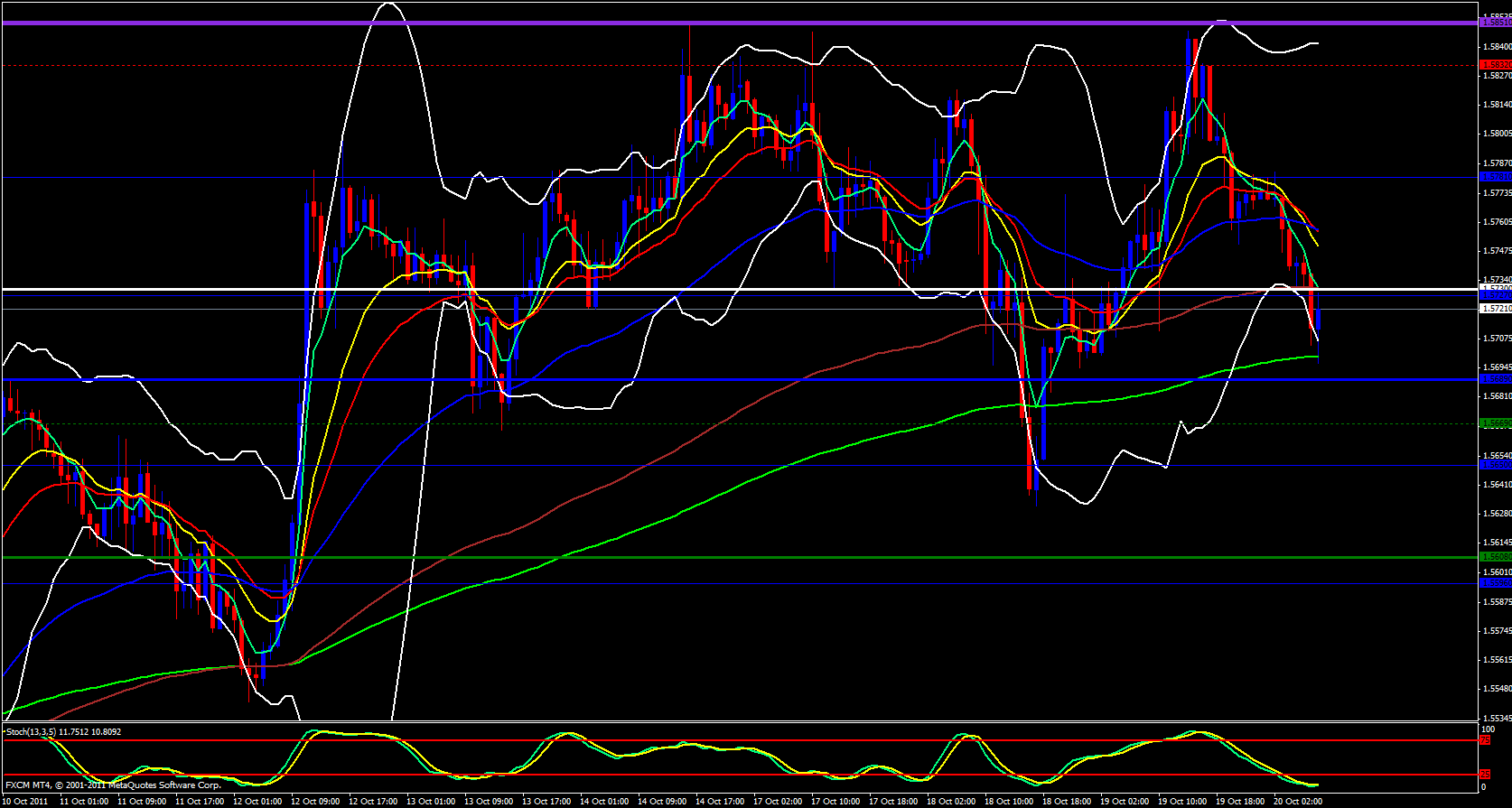 Looking at the 15 minute chart price has been gracefully riding down the 13 ema and the bounce off the hourly 233 overlapped with the yesterdays low. Price has just met back up with ema resistance on the 15 minute chart and I expect the ema's to take control and for price to continue to fall.