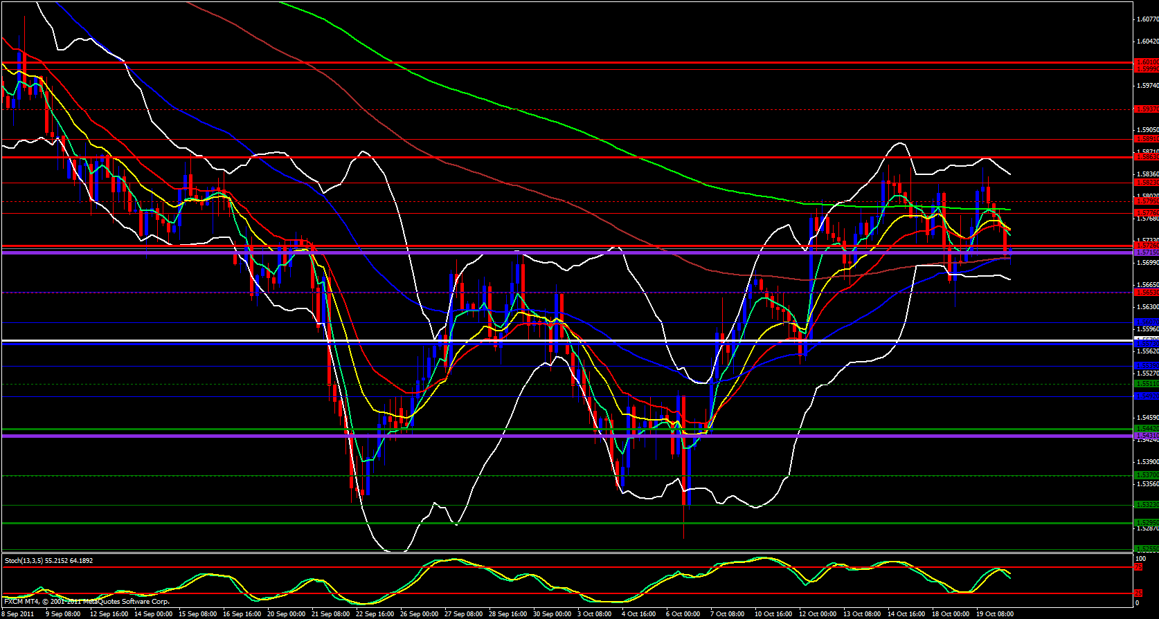 GBP/USD pair bounced off the daily 55 yesterday and has fallen and bounced a bit off the daily 21 and 13 ema's. Price recently made a fib at the 38.2 level of the recent move down and the stochastics is in the overbought zone so I do expect price to continue to roll over to the downside.