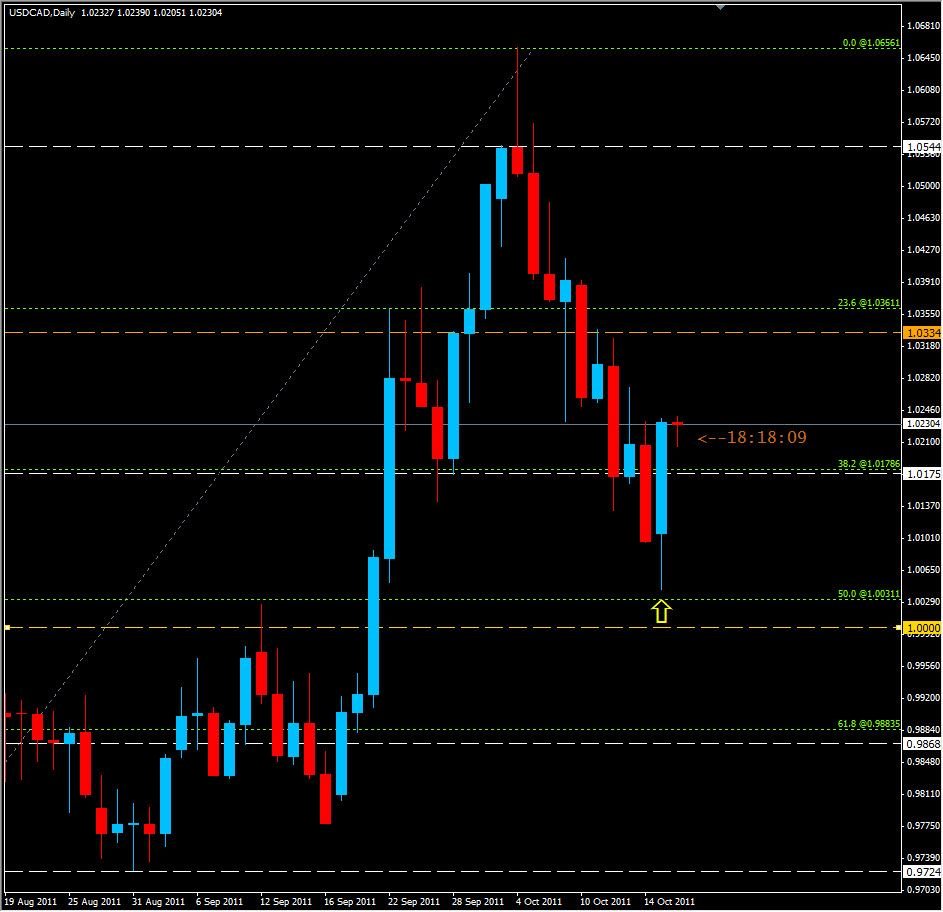 Yesterday I wrote about the Loonie's weekly chart, predicting it would pull back to the 1.0175 level, which it has and then some. This may be a pull-back, but considering traders aversion to holding European currencies right now, the Greenback is making gains and might continue to do so. The daily chart is hinting at a possible bullish continuation and the pair turned bullish today after gaining back 500+pips in the last 10 days from the Greenback. Price traded as low as 1.0043, where it possibly reacted to the 50% Fibo level at 1.003, before turning and closing 189 pips to the north at 1.0233. Price pushed through the resistance zone at 1.0175 like it wasn't even there to close above last Friday's high and the 38.2% Fibo level at 1.0178. We will have some resistance above at 1.025, 1.0275 and 1.0350 above. To the downside, we see resistance at the (now support) level of 1.0175, 1.0100 and 1.0031, which is again the 50% Fibo level. With the Greenback being considered a safe haven for those wishing to dump European currencies, it is likely that we will see more bullish price action on this pair.