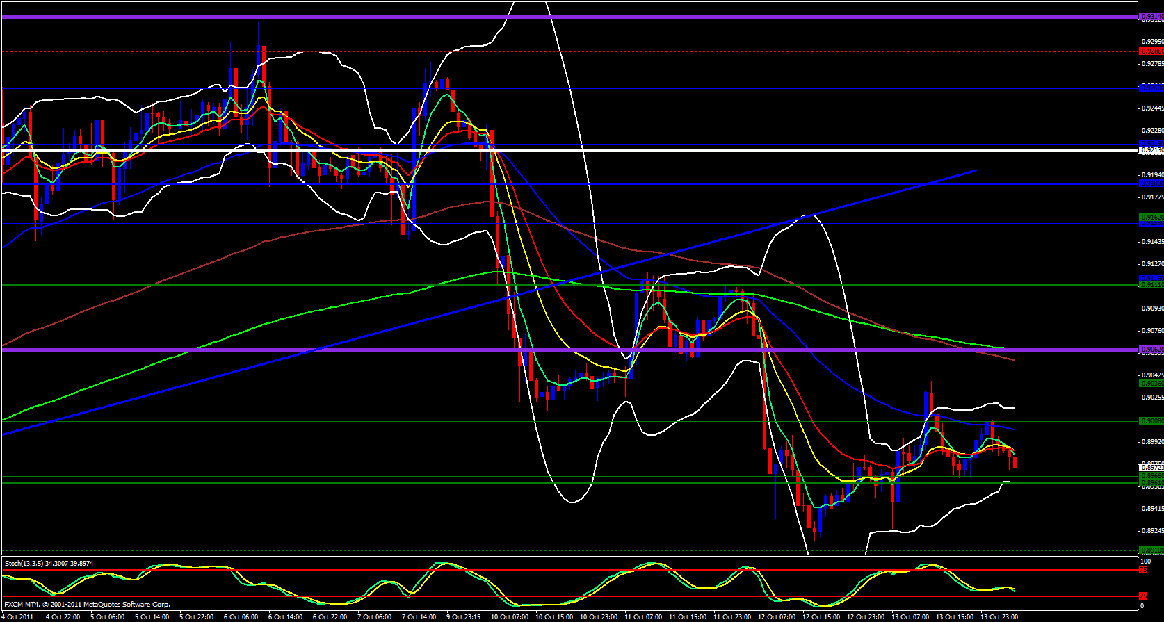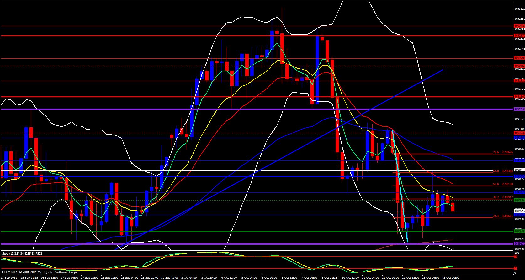 Yesterday was a bit bullish for this pair, but it was merely a predictable retracement. It came back up and poked the daily 5 then closed just below the daily 21 and now the daily 5 is pointing down giving price a push to the downside. 0.8870 is a realistic area to see this pair fall to in the not so distant future.