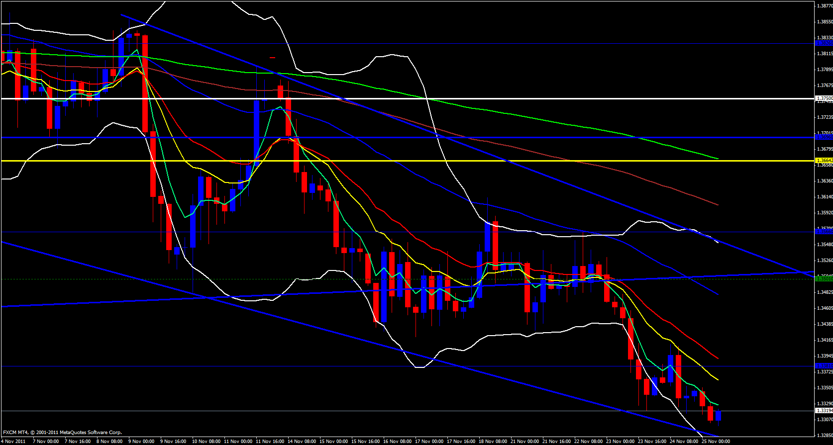 On the 4 hour timeframe price has been riding the ema's to the downside. On the hourly timeframe price is riding down along the ema's with Bollinger bands pointing down.