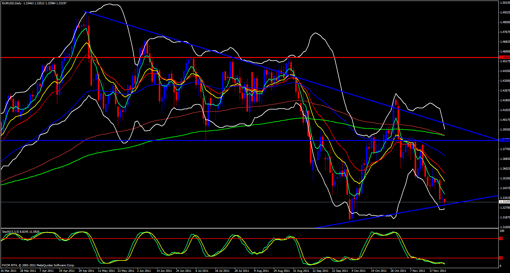 The EUR/USD starts off right on support. It will be interesting to see what will happen since price is riding down the ema's very hard and the downtrend has been quite strong and possible price may be able to break this support area.