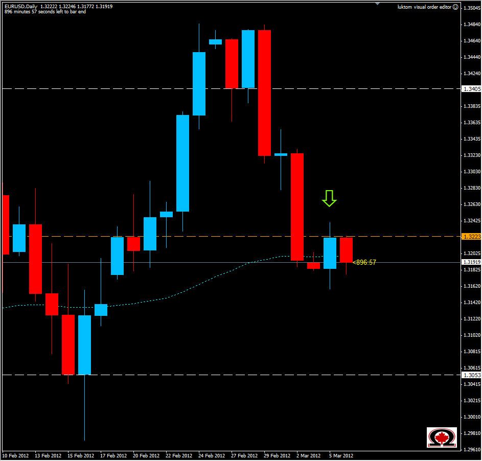 The EUR/USD is continuing its bearish trend after the London Open. Although price was bullish yesterday, it was halted by the weekly resistance zone at 1.3223. So far today it has fallen to the Daily S1 level at 1.3174, but there is a high probability that it will test the Daily S2 by the end of the day at 1.3125. Below that we will have one more support zone at 1.3092 before we reach the weekly zone at 1.3050. If price reverses and turns bullish, look for resistance at the previously mentioned 1.3233 and then 1.3255 or 1.3280. Price has closed below the daily moving average twice in the past 3 trading days, and a close below 1.3200 today will confirm a bearish overtone and a close below 1.3160 will surely indicate a push for the 50% retracement level from January's low to February's high.