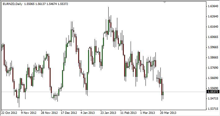 I believe that the 1.54 level will offer significant support, but if he gets broken to the downside we could be off to the races. After all, both the Kiwi dollar in the Australian dollar have seen a resurgence over the last couple of sessions, and any good feelings out of the marketplace due to the situation in Cyprus should benefit both of those currencies. That being said, it would make perfect sense for this pair to continue lower.