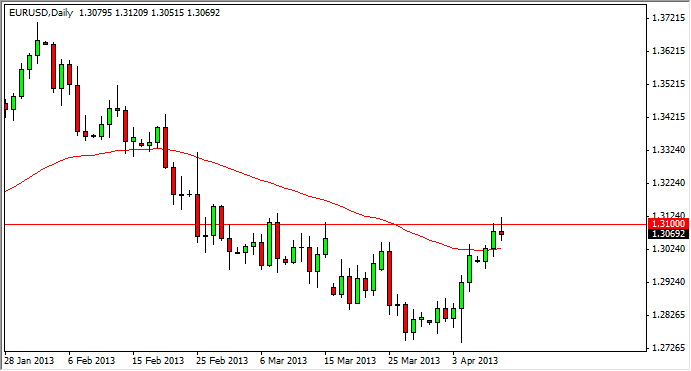 The fact that we formed a shooting star is quite telling. If we get above the top of the shooting star, I see a clear path to the 1.3250 level in the short term. It also shows a significant break of resistance, which of course would bullish overall. However, the classic sense of technical analysis suggests that this shooting star is a sign of weakness, and it is in fact warming right where you would expect to see it. Because of this, I think that a pullback is coming, and the way the equity markets have been acting, I think we need it.
