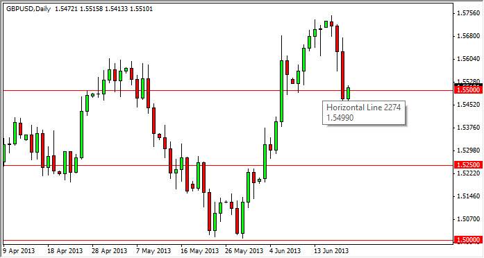 The GBP/USD pair fell during the session on Thursday, but as you can see found support down near the 1.54 level, and bounced enough to close back above the 1.55 handle, this resulting hammer of course is a very significant sign of bullishness, as it shows how much support there really is below this area. Although not shown on the chart, it should also be noted that the 38.2% Fibonacci retracement is just below the 1.55 handle as well.