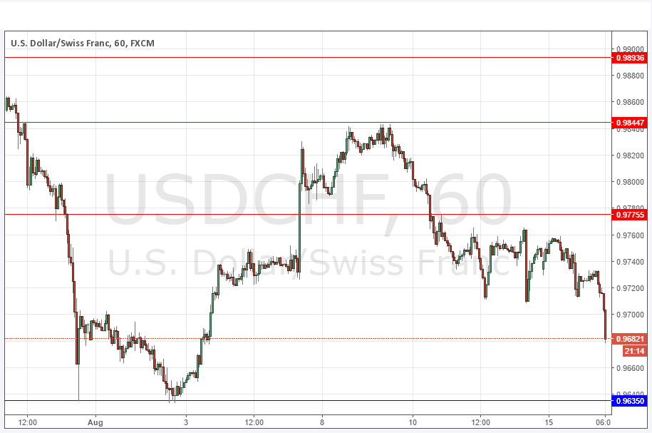 We have a fairly strong downwards thrust that has broken the support that had previously held the price up above the 0.9700 area a few times.