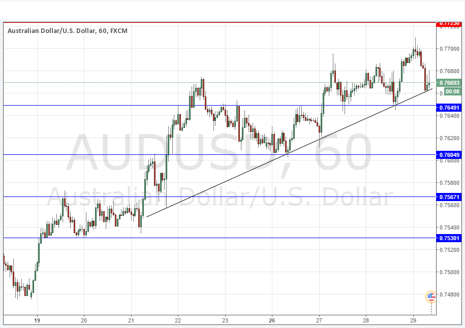 The area above the next resistance level at 0.7723 has been strongly resistant for several months and is likely to be hard to break.