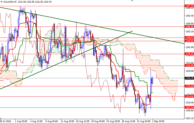 Gold prices settled at $1324.76 an ounce on Friday, scoring a gain of 0.34% on the week, as soft U.S. jobs data lured investors back into the market. The XAU/USD pair traded as high as $1331.01 after the Labor Department reported that the economy added 151K jobs in August and unemployment rate held at 4.9%. Data also showed that gains for the prior month were revised up by 20K. This report is far from a being disaster but it falls short of expectations by enough to throw a rate hike at the Fed's next meeting in to doubt.