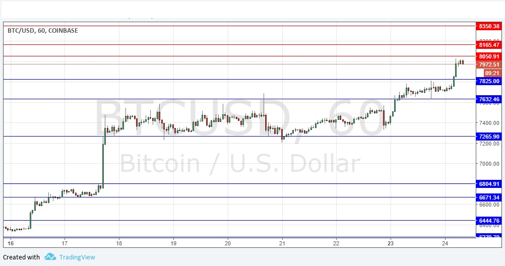 Yesterday’s signals were not triggered, as there was insufficiently bullish price action at $7,675.