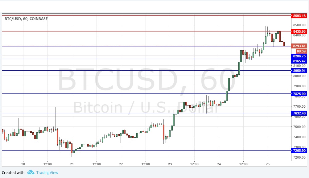 Yesterday’s signals were not triggered, as there was insufficiently bearish price action at $8,350.