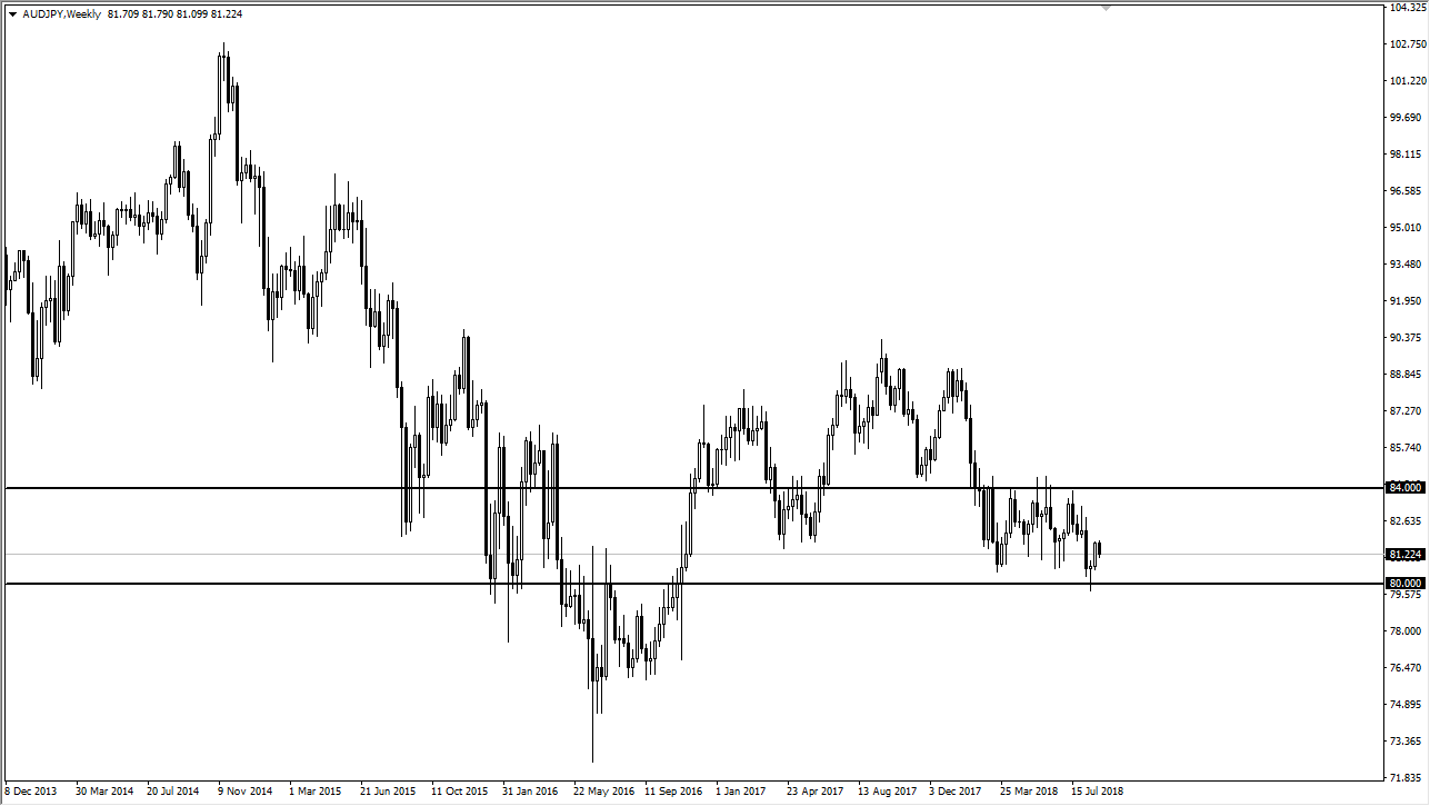 Otherwise, you can use shorter-term charts and perhaps something along the lines of the stochastic oscillator to confirm whether you should be buying support or selling resistance. I think this might be one of the better currency pairs to trade during the month of September, especially if we can stay range bound. It makes sense that it has been quiet for some time, because while the Japanese art light years away from tightening monetary policy, the risk appetite out there seems to be jittery to say the least. In other words, this pair simply has no idea what to do next. On a break down, I believe that the market goes looking towards the ¥77 level. If we do break to the upside, then we will probably be looking at ¥88.
