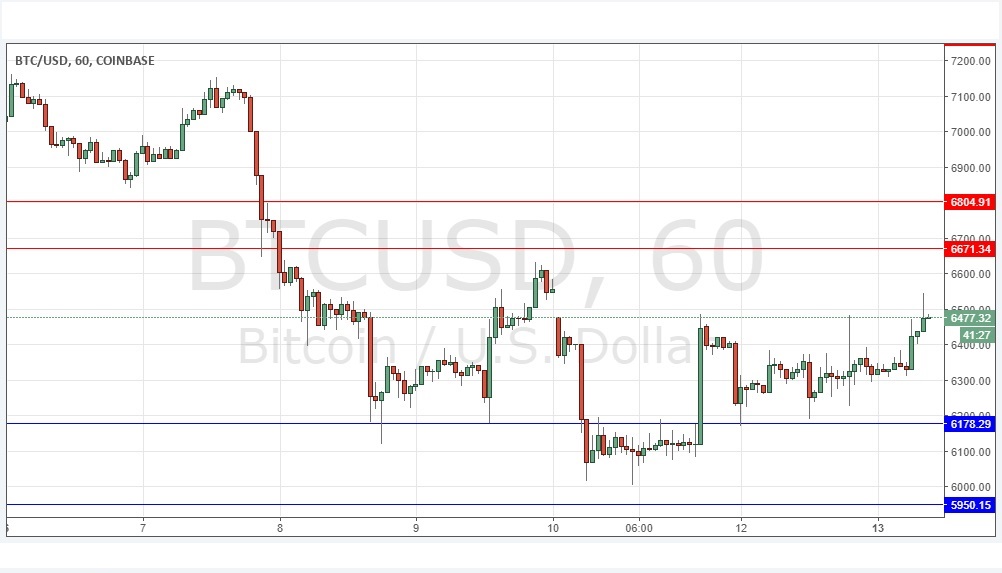 I wrote last Thursday that I would be very happy to take a bearish bias here below the support at $6,178. The support held all day, so I did not take such a bias, which was a good call. The last few days have seen the price turn more bullish, and we see a bullish “over and under / Quasimodo” pattern forming based upon the support at $6,178. The price is at recent highs, so it is hard to say if it will go higher, but there seems to be some amount of bullish momentum. I think higher prices are more likely over the coming hours than lower prices.