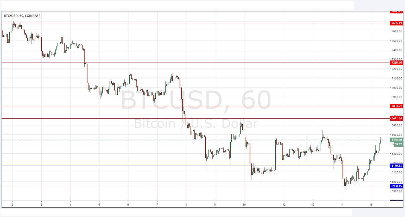 Yesterday’s signals were not triggered, as there was no bearish price action at $6,178 but the earlier long trade from $5,950 would be nicely in profit if it had been allowed to run.