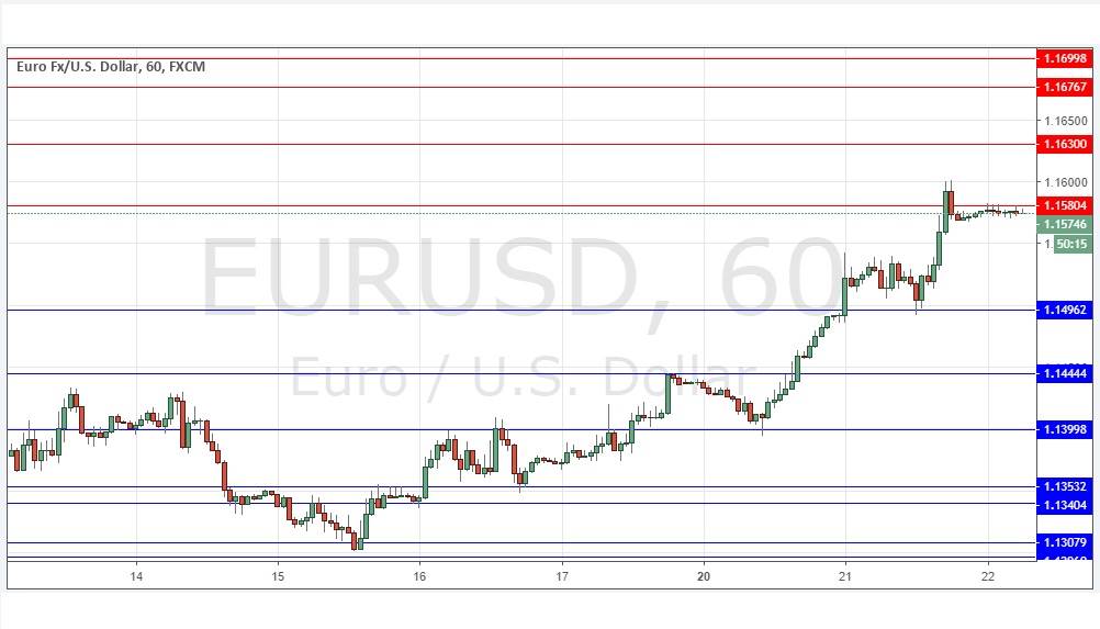 I wrote yesterday that I would only take long trades today if there were a bearish pullback to 1.1500 with a bullish bounce. This is exactly what happened, although the price ranged sideways throughout the entire London session, only taking off after the London close, which is unusual. The strongly bullish picture continues, with the price now flattening out just below the nearest resistance level at 1.1580. This price area, above 1.1580, was a key supportive area in the past, and it may be difficult for bulls to push the price any higher over the short-term. However, there is strong bullish momentum and the price continues to hold up. I see 1.1580 and 1.1630 as the pivotal levels to watch today, and I would take a bullish bias above 1.1580.