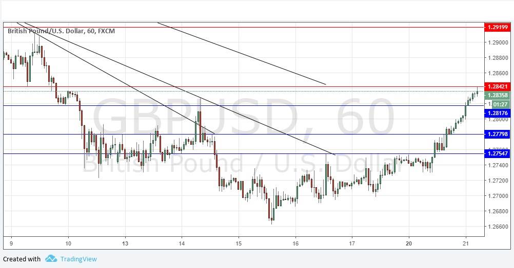 It now looks as if 1.2842 will be today’s pivotal level. I would have a bullish bias if the price can get established above that level as the London session gets underway, but I generally feel more comfortable being long of EUR/USD than this currency pair.