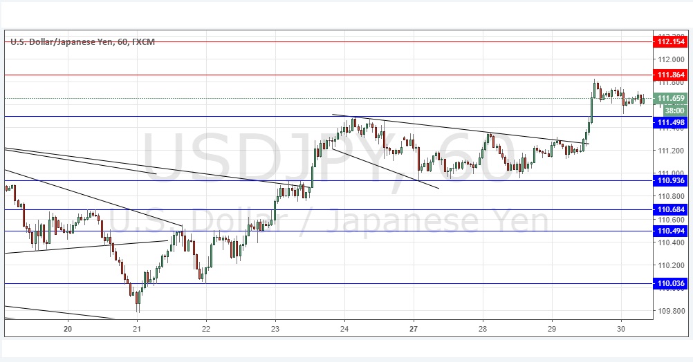 Go long following a bullish price action reversal on the H1 time frame immediately upon the next touch of 111.50.