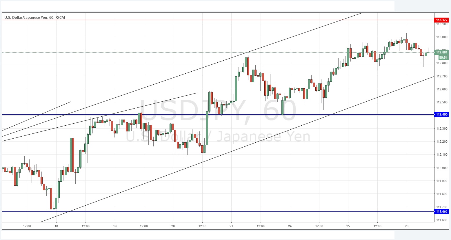 I noted yesterday that the price had continued to advance, and the long-term bullish price channel remained intact. However, there were short-term signs that the move up has run out of steam just below the round number at 113.00. I remained essentially bullish above 112.41 but thought that we may well need a retracement before another good opportunity entry presents itself. This was a good call as the price did not rise much more before pulling back, although it does not look like it is ready to rise yet over the short-term. Technically, the bullish price channel remains intact and healthy. It is likely that nothing much will happen before the FOMC releases due later, and the channel is likely to hold until that time.
