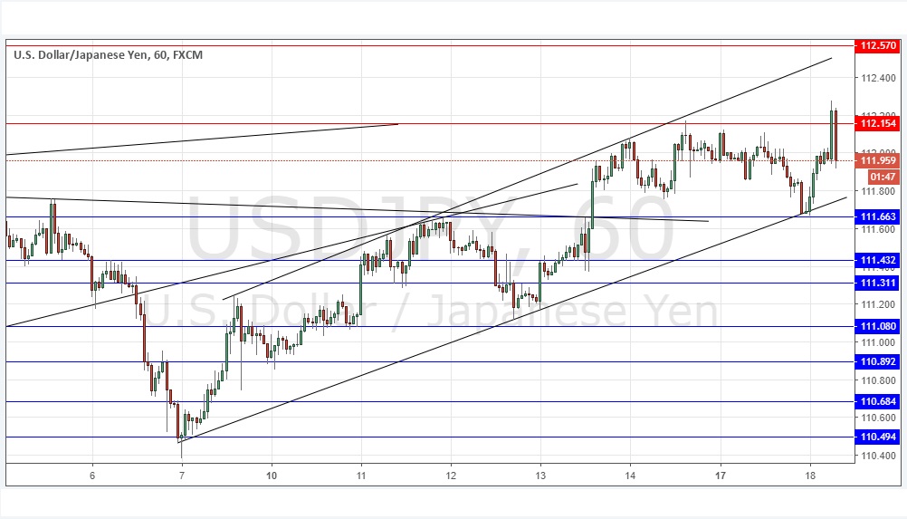 The extremely weak long-term uptrend continues, and it has been given fresh impetus by the bullish price channel which has formed over the past ten or so days which is shown within the price chart below. I was looking for a major bearish reversal at the former resistance level at 112.15 and after seeming to break up beyond this level decisively just before the London open, the price fell right back down to where it started, printing a false bullish breakout. However, the price channel and support levels remain intact, so it is looking likely that there will not be any major technical developments until the Bank of Japan’s input due later. Until then, it will probably be a superior approach to play any rejections of any key levels for a few pips only in either direction.