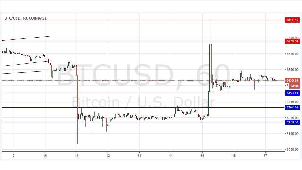 I wrote yesterday that the price here looked likely to consolidate after such a massive price spike which essentially went nowhere the day before. However, due to the slightly bullish action plus the fact that the support at $6,353 held, I took a slightly bullish bias here above $6,353. This was a pretty good call as the price has essentially just gone sideways. It is hard to see any change to the technical picture, the best that can be said is that the longer the price remains above $6,353, the more likely it is to rise eventually, but it looks like it could easily go sideways for a while yet, so I have no interest in this pair today.