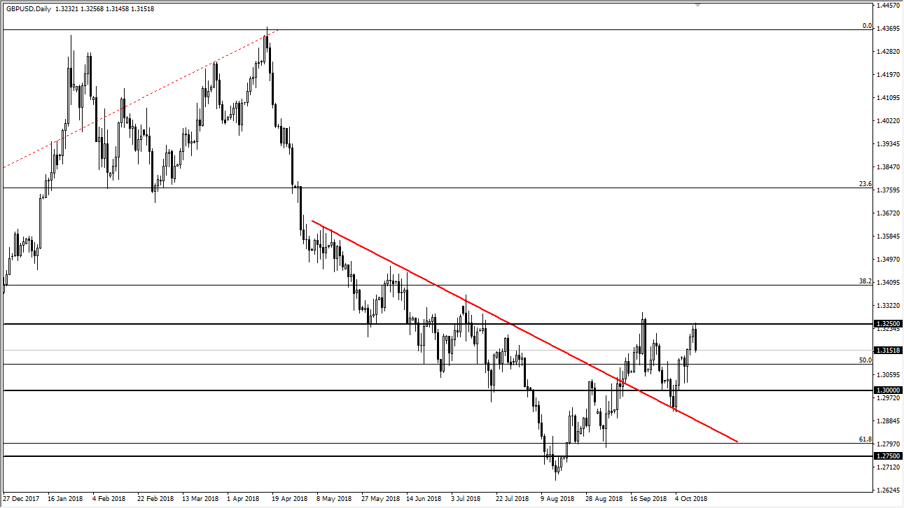 The British pound got hammered during the session as we reached towards the 1.3250 level, forming a short-term “double top.” I think we will probably see a bit of a pullback from here, but I also anticipate that the 1.30 level underneath should be supportive. Because of this, I think we may see another couple of days of negative action, followed by value hunting yet again. We have broken out previously, as evident by the 1.30 level being underneath, and of course the downtrend line. Ultimately, I think that we do break out to the upside as soon as we get some type of settled negotiation between the EU and the UK, but until then we are going to see a lot of noise in this pair. I look at these pullbacks as value opportunities.