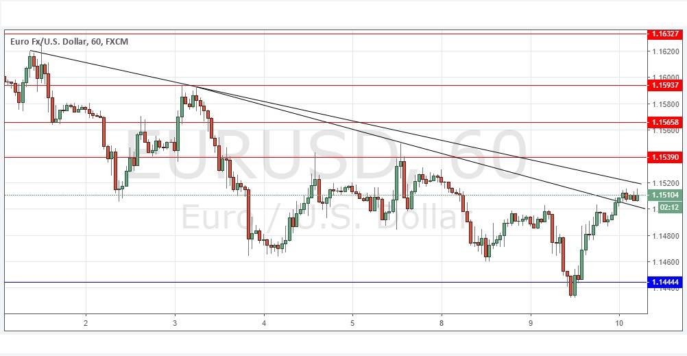 Short entry following a bearish price action reversal on the H1 time frame immediately upon the next touch of 1.1539 or 1.1566.