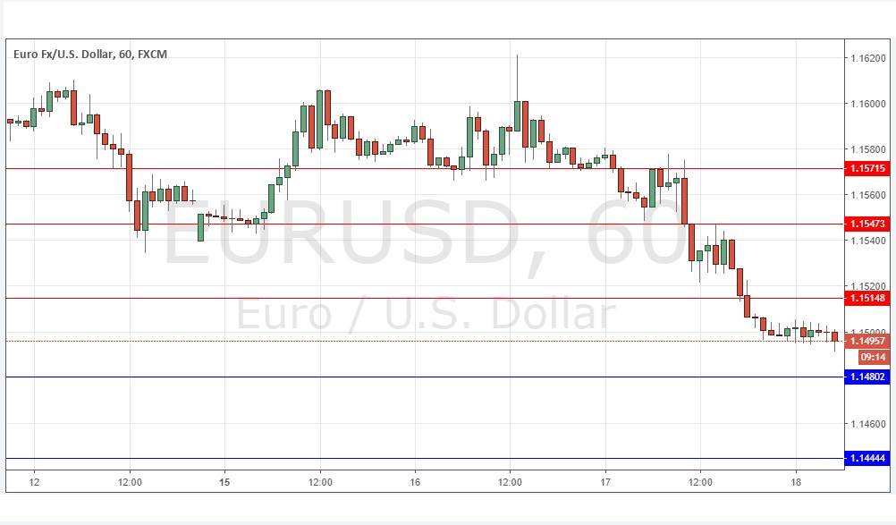 Yesterday’s signals were not triggered, as the bearish price action took place a little way above the resistance level identified at 1.1566.