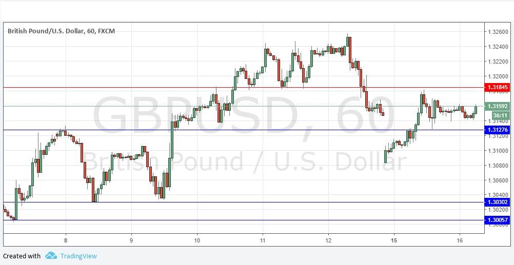 I wrote yesterday that I had no directional bias, but that if the price remained capped by 1.3128 for several hours, it would probably fall. That level broke very quickly as the London session got underway, and the price rose to nearly reached the next resistance level at 1.3185, so it was a pretty good call as a pivotal level for the day.