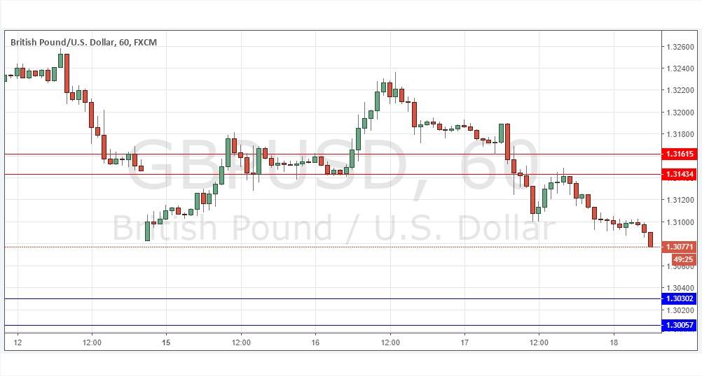 Go long following a bullish price action reversal on the H1 time frame immediately upon the next touch of 1.3030 or 1.3006.