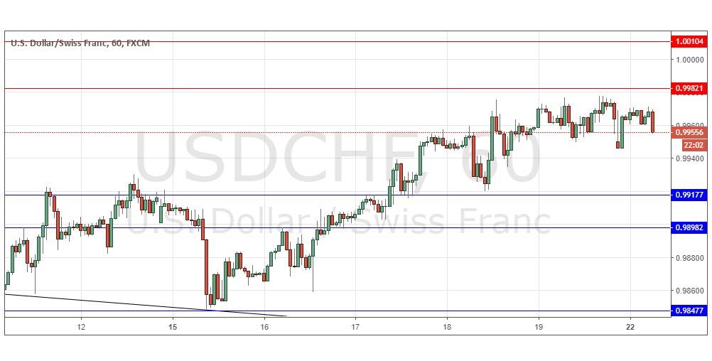 Short entry following a bearish price action reversal upon the next touch of 0.9982 or 1.0010.