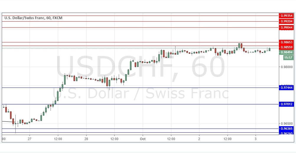 Yesterday’s signals were not triggered, as the resistance level at 0.9856 was not reached until after the end of the London session.