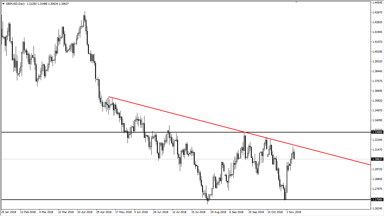The Euro initially tried to rally on Thursday but then broke down rather significantly as the Federal Reserve has reiterated its desire to raise interest rates. This of course drives money into the US dollar, and with the uncertainty in Europe it makes a lot of sense that this pair would continue to drift underneath. I believe at this point we are still trading between the 1.13 level and the 1.15 level, so a retest of the 1.13 level may be exactly what we are looking at. Beyond that, I think there is only a matter time before Brexit weighs upon the Euro and of course the Italian situation flairs back up. At this point, 1.13 looks like a target, but that target may be in serious jeopardy as well. If we broke above the 1.15 level, that would be rather bullish, and a bit surprising.