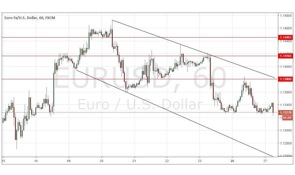 Yesterday’s signals produced a profitable short trade following the bearish rejection of the resistance level at 1.1380. This trade has the trend behind it, so it may be worthwhile leaving any profit to run.