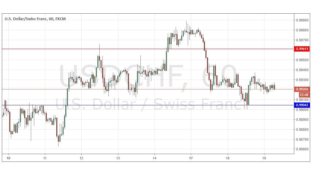 Yesterday’s signals produced a profitable long trade following the bullish pin candlestick on the hourly chart which rejected the support level identified at 0.9909.