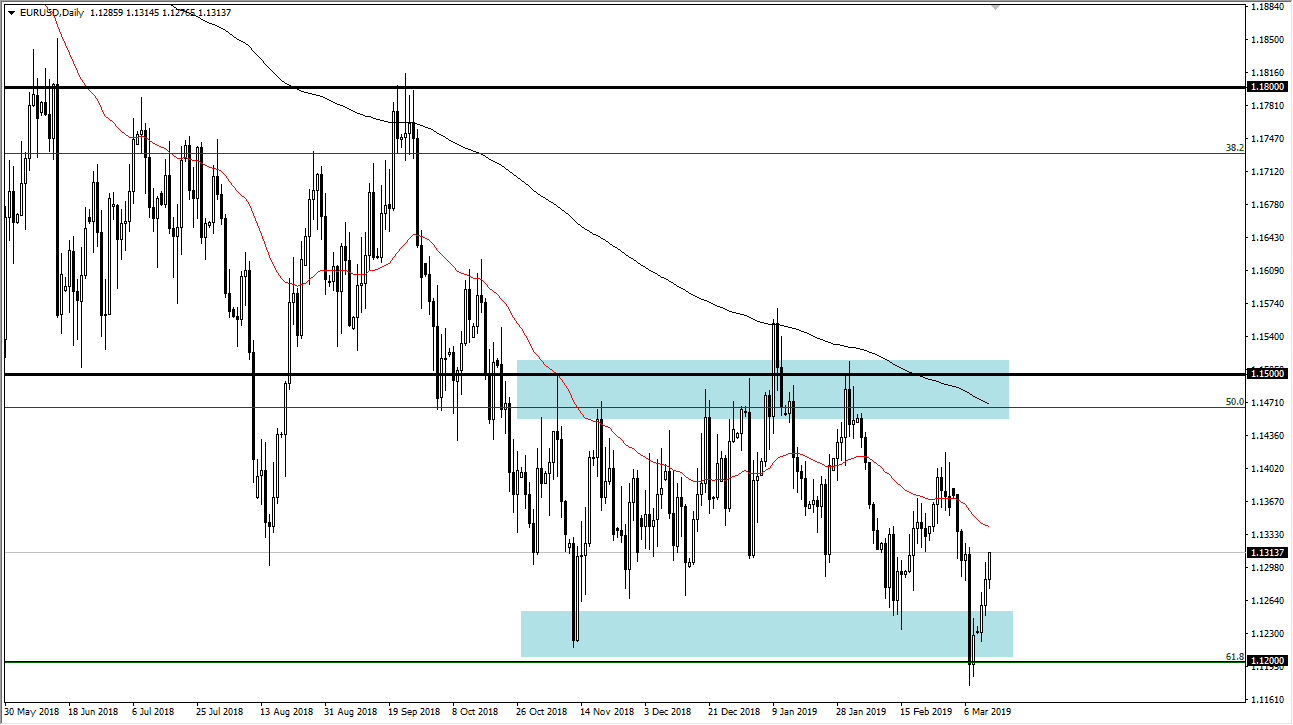 The Euro initially pulled back during trading on Wednesday but then shot higher during the day as we have seen quite a bit of a bounce from the crash after the ECB press conference. In fact, as I record this video we are now wiping that entire negative candle stick out, and it looks as if we are ready to continue the overall consolidation that we had seen. With that in mind, it looks as if the Euro is very strong, at least in the short term, and therefore I think we are getting ready to continue the overall consolidation between the 1.12 level on the bottom and the 1.15 level on the top. With that in mind, I believe that short-term dips should offer buying opportunities and we will continue to grind higher. Keyword here of course is “grind.”