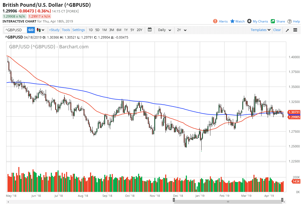The British pound broke down a bit as well, slicing through the 1.30 level late in the day. If we can break down below the 1.2950 level, that would probably allow the market to reach towards the 1.28 handle, and then possibly even the 1.27 level as we see a lot of support in that area. Ultimately this is a market that doesn’t have much to work with considering that we have now got the six month extension for the Brexit, and now there won’t be much in the way of catalysts.