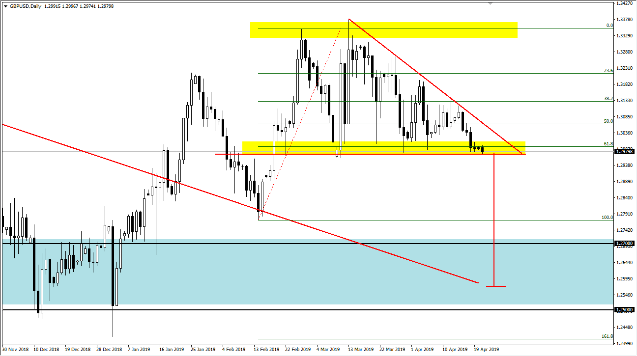 The British pound has done very little during the trading session on Monday, as we are dancing around the 1.30 level. The support extends down to the 1.2950 level, as the area has been a thick support barrier supporting the descending triangle that I have marked on the chart. Based upon the triangle, we could probably go down towards the previous downtrend line, which should offer support. The market simply has no reason to rally significantly, as the Brexit has been put on hold. Quite simply, it’s not until we get some type of clarity that the British pound will be able to rally for the longer-term.