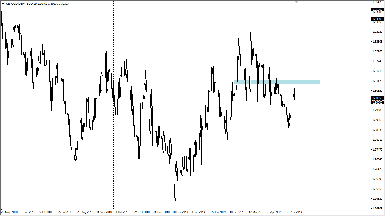 The British pound initially tried to rally during the day as well, but also gave back quite a bit of the gains to turn around of form a bit of a shooting star. With this being the case, it’s obvious that we are struggling to get above the 1.31 level. At this point in time it’s a situation where we are selling any type of strength in the British pound, as the US dollar continues to be very bullish. With the Federal Reserve lacking any type of dovish nest when it comes to the recent press conference, it’s very likely will start to pay attention to the Brexit again, which has offered nothing in the way of good news other than the delay that the parties involved had recently signed.