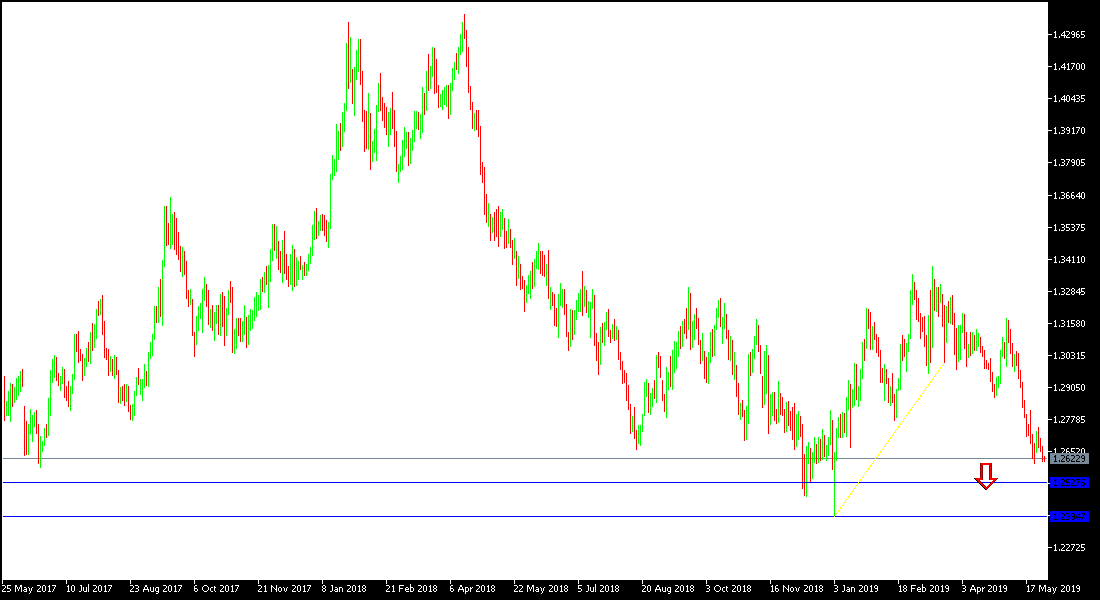 Ahead of the release of important US economic growth figures, the GBP / USD pair continues to struggle with a stronger bearish momentum towards the 1.2611 support level, its lowest level for more than 4 months, before settling around 1.2635 at the time of writing. The pair's bearish momentum increased after an unexpected landslide victory for a party supporting Brexit at any situation in the EU election, raising expectations that Britain could leave the EU without a deal.