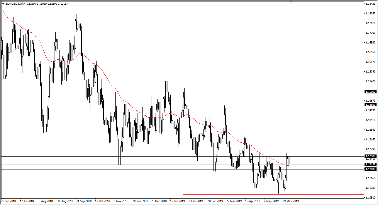 The Euro initially shot higher during trading on Wednesday, reaching as high as 1.1320 or so, but then turned right back around to slice through the 1.1250 level. This move coincide quite nicely with the Gold markets rolling over, but we did park just above the 50 day EMA. The question now is whether or not we can bounce, or are we going to simply fall from here? I believe that the candlestick has shown just how resistant the 1.1250 level is going to be. The fact that we could not close above there tells me quite a bit, and therefore I think that the sellers are still very much interested in this market. If we break down below the 1.12 level, it’s very likely that we continue to go lower, perhaps down to the 1.1150 level, and then the 1.11 handle.