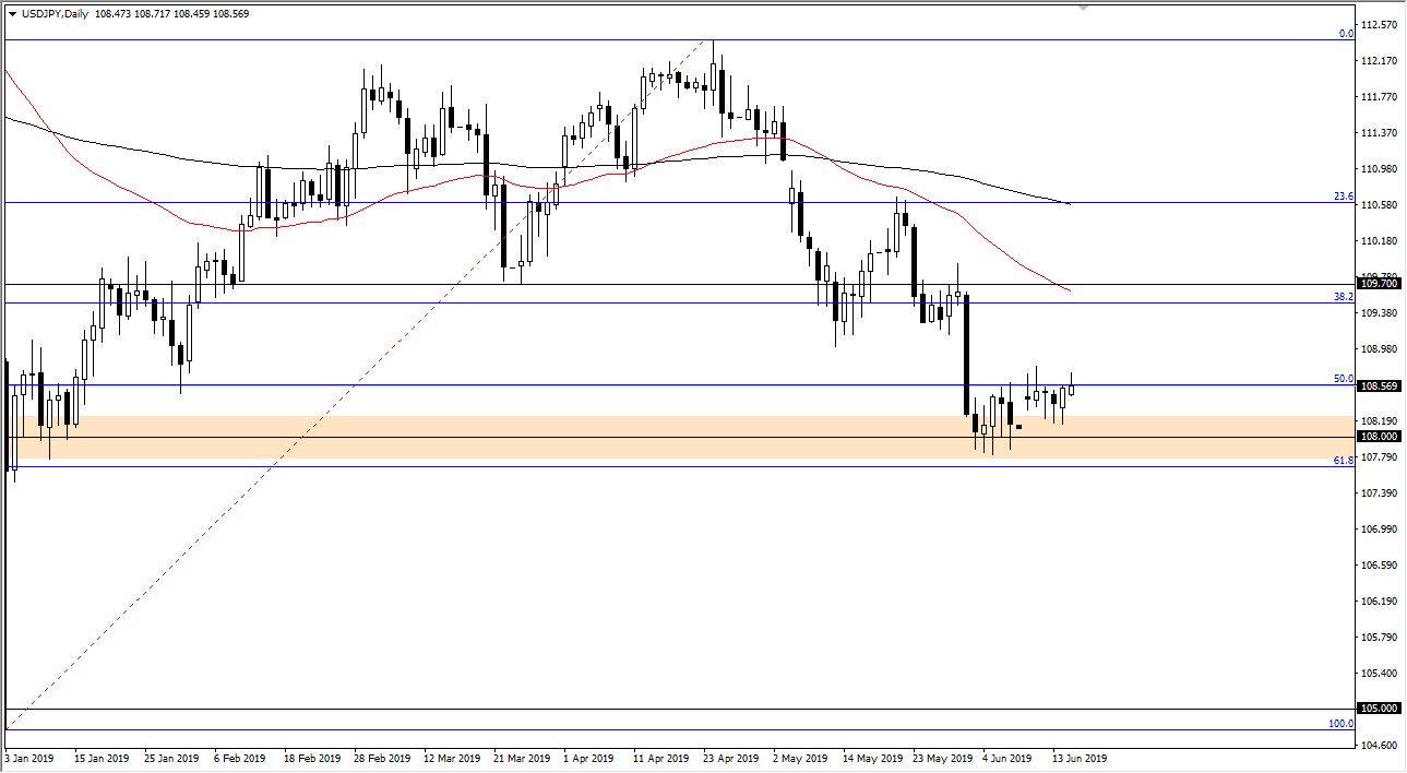 If we pull back from here, it’s very likely that the ¥108 level offer support, extending down to the 61.8% Fibonacci retracement level. With that, a break down below there would be extraordinarily negative. All things being equal though, I would anticipate more of a range bound market until we can break out. The market which is the fence continue to look at risk appetite more than anything else when it comes to this pair.