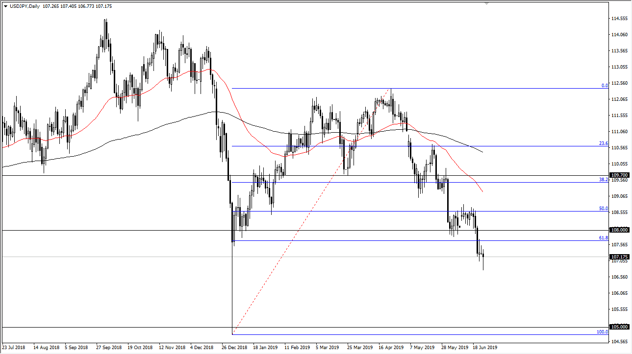 The US dollar initially fell hard against the Japanese yen but has bounced significantly to turn around of form a bit of a hammer. That hammer is a bullish sign, but at this point we have broken down below the 61.8% Fibonacci retracement level which is a very negative sign. At this point, it’s very likely that we would go down to the 100% Fibonacci retracement level given enough time. That could send this pair as low as ¥105. That doesn’t mean that we go there overnight, but it certainly does suggest that we could get more of a grind to the downside. This of course would accompany both negativity in the markets, which we are starting to see, and of course the Federal Reserve getting loose with its monetary policy, driving the value of the greenback lower.