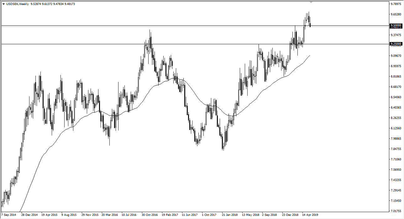 Sweden’s economy is heavily dependent upon technology, which is of course a “risk on” situation. As you can see on the weekly chart, we have been grinding higher for ages, and our most certainly in an uptrend. With that in mind, and the fact that there are a lot of concerns around the world when it comes to global growth and trade wars, it makes sense to think that the market would continue to go higher. That being said, we have rolled over during the last month, so it looks like a pullback is in the cards.