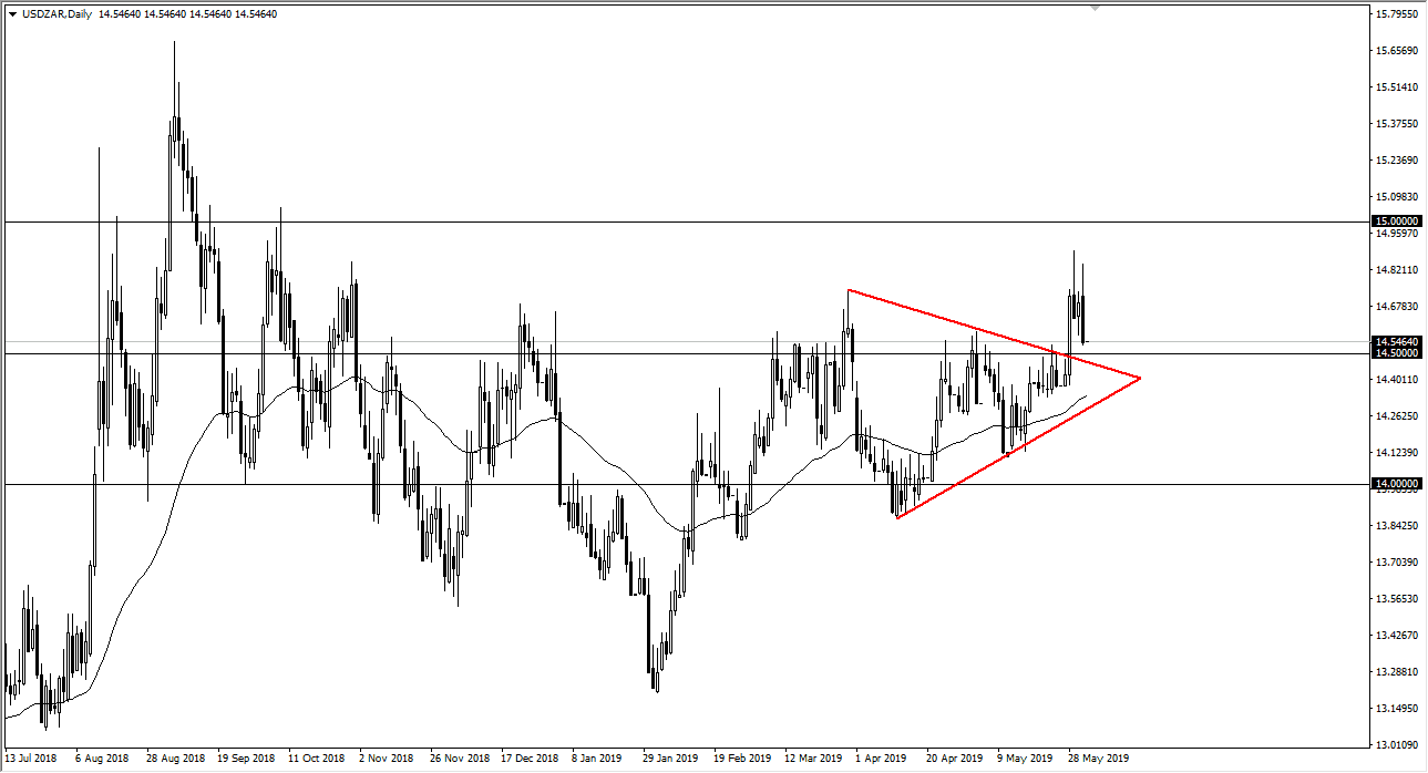 While the US dollar has also benefited in this “risk off” environment, but not necessarily against this particular currency. However, there is a technical pattern that I am watching that could lead to a bigger move. After all, we had recently broken above the downtrend line of a symmetrical triangle and reached towards the 14.90 Rand level. A pullback from there makes a lot of sense, and now it looks like we are going to test the top of that symmetrical triangle to see if it holds as support.